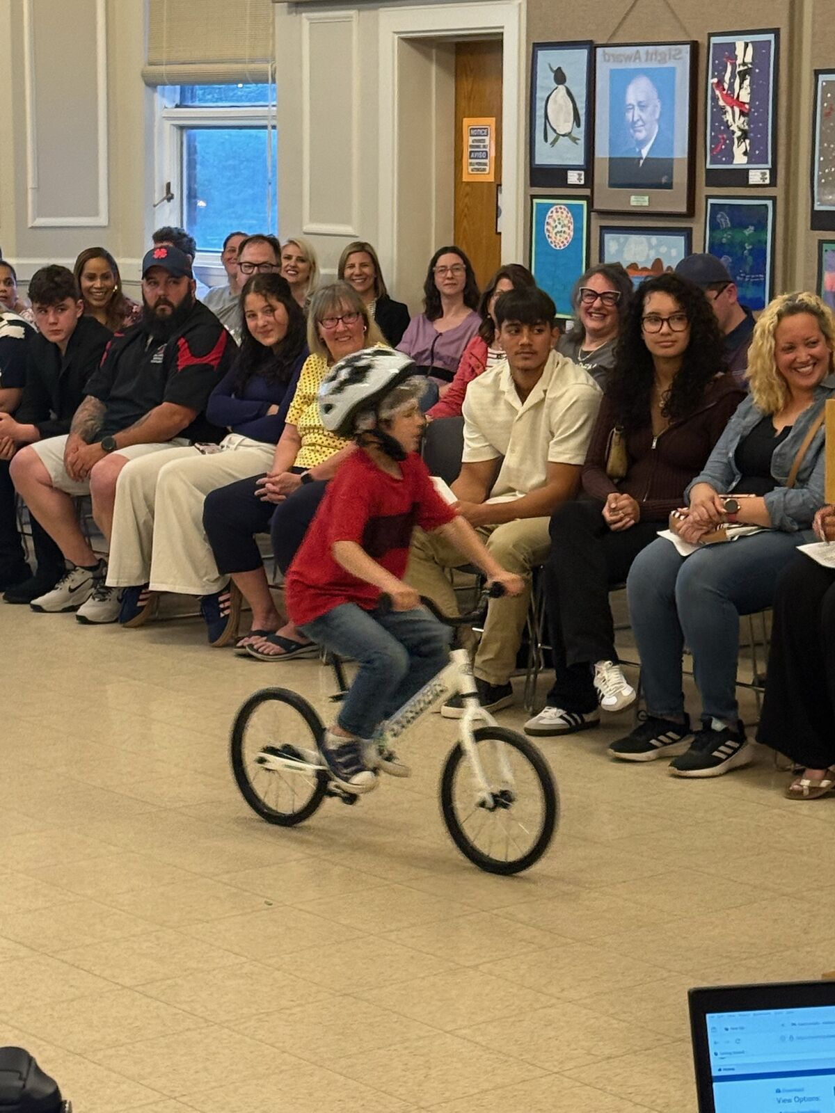 We are so proud to share last night we had two amazing students, Dominic in Grade 1 and Ethan in Grade 5 join Mrs. Glaske and Mrs. Lopez at the May Board of Education Meeting to talk about the benefits of our All Kids Bike Program. They did an amazing job riding their bikes in the auditorium of the BOE building. Thank you to Mrs. Galske, Mrs. Lopez and Mr. Roy (Dominic's Dad) for speaking about the benefits of this program. To listen to Ethan share how importance perseverance is please click here.
